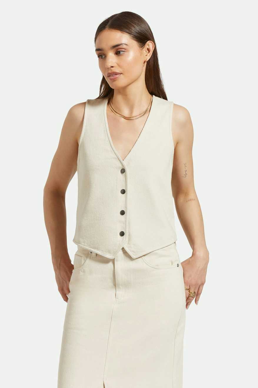 Our versatile 100% cotton Ryder Vest includes Brixton logo metal snap details. Wear it alone or layered, and pair it with the Ryder Pencil Skirt for the full look.