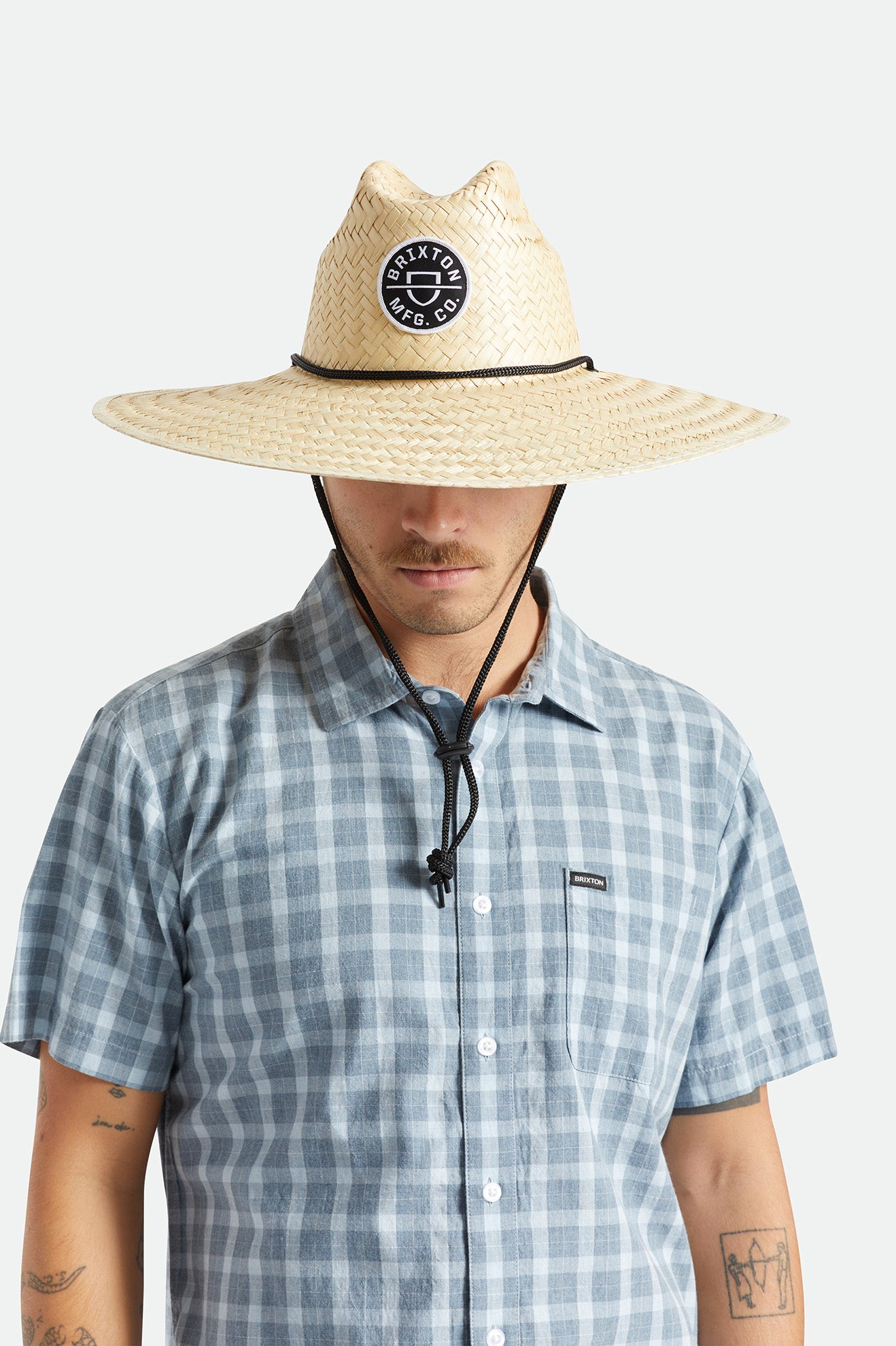 The Crest Sun Hat is destined to be a traveller’s companion. It has a wide brim for 360º of shade while mazallo palm leaf provides 50+ UPF. An adjustable polyester drawcord keeps it in place. Finished with a woven merrowed-edge patch, front and center.