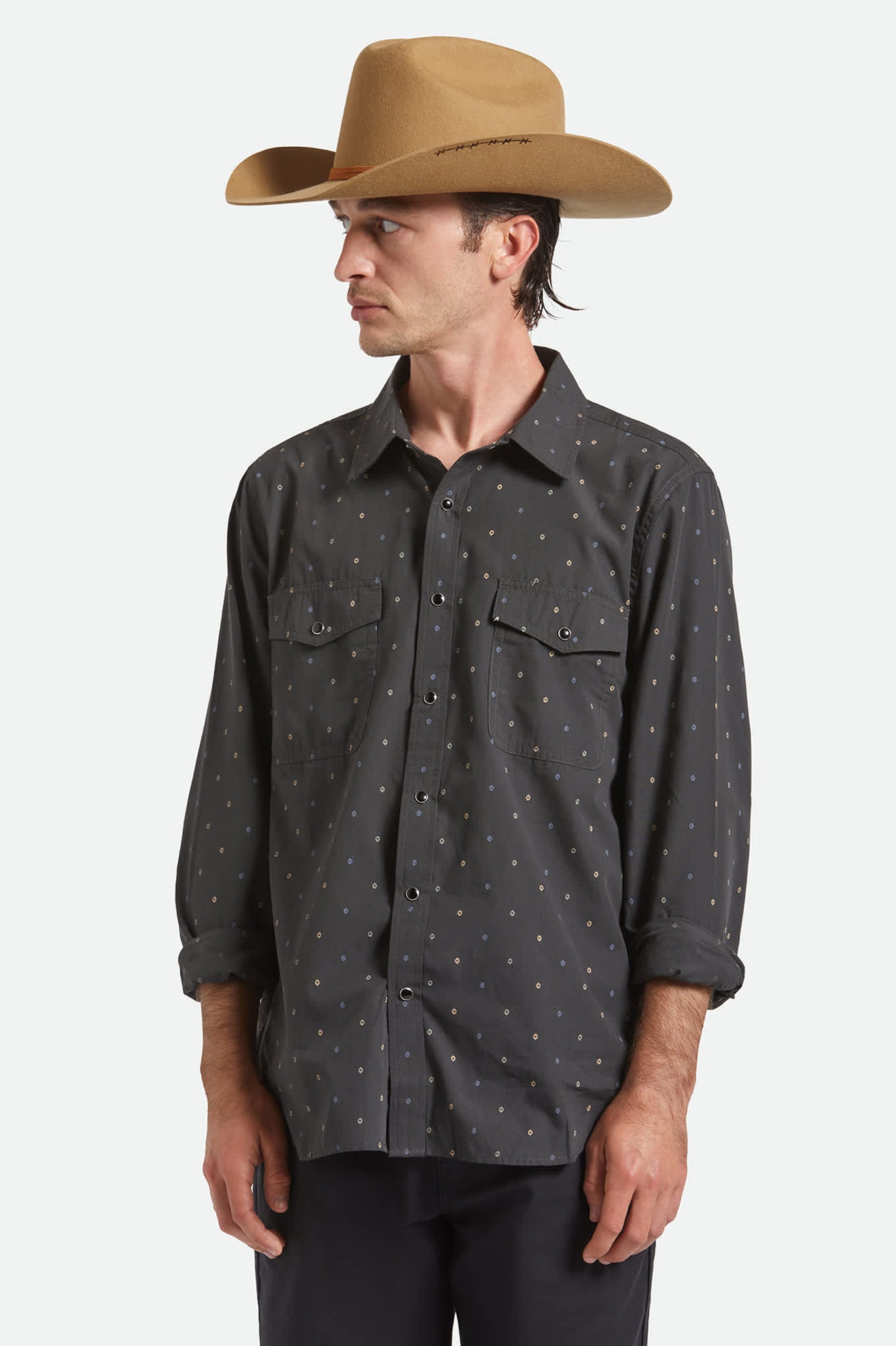 Celebrate Western heritage with the timeless Laredo Branded Cowboy Hat. Designed with a striking cattleman crown and side roll brim, this unisex cowboy hat delivers hard stiffness for a structured, iconic look. Made from 100% wool felt, it offers durability and comfort in equal measure. A barbed wire brand etched on the brim brings rugged charm, while premium finishes like the leather band and metal headwear plaque enhance its standout appeal. Ideal for anyone seeking bold Western-inspired style, this unisex cowboy hat is the perfect accessory for everything from outdoor adventures to adding character to your everyday outfits.