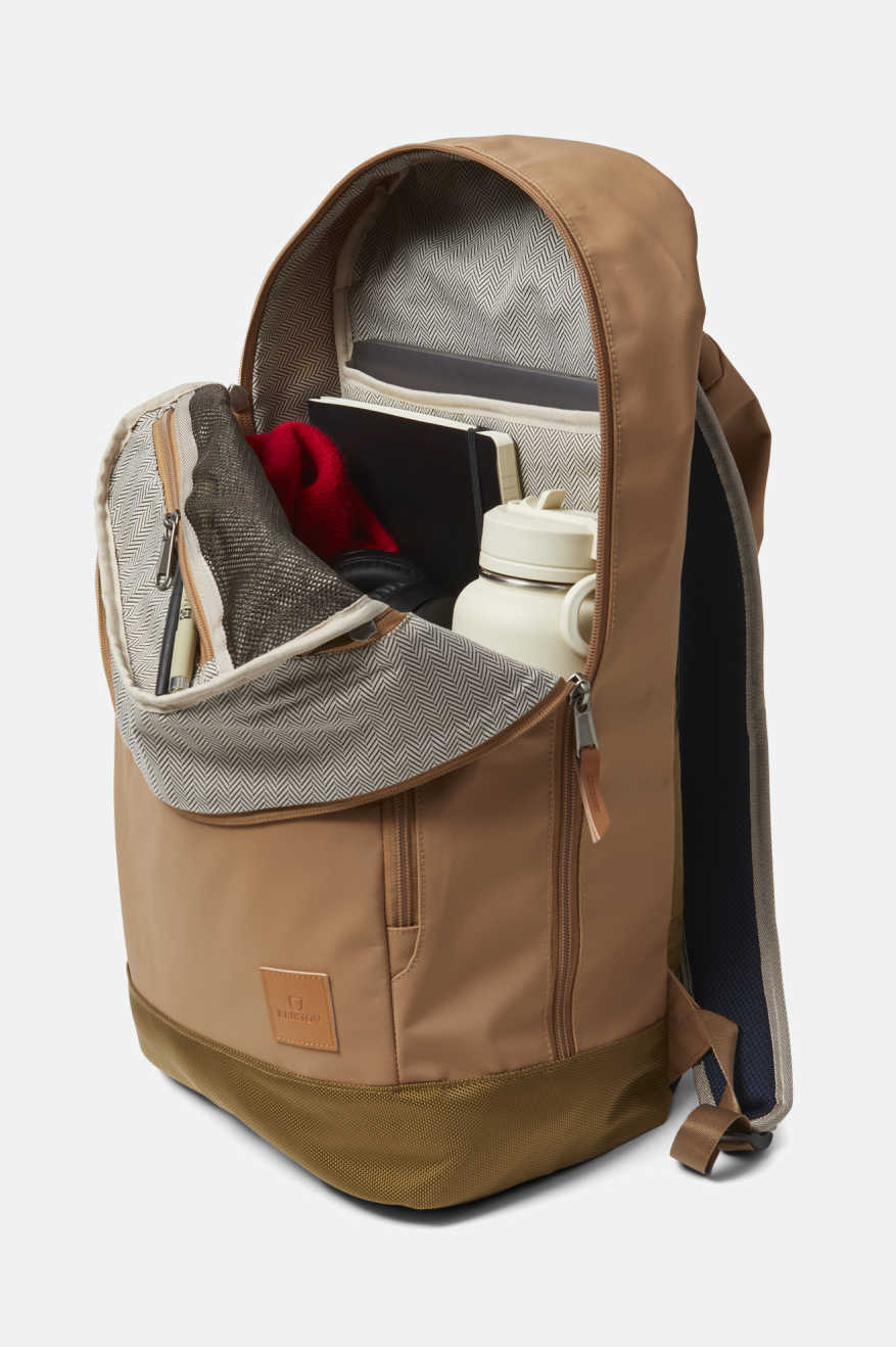 The Commuter Backpack combines daily storage with innovative details. It’s built with water-resistant tarpaulin and ultra-rugged nylon designed to stand up to extreme urban weather conditions. The zippered main compartment features a padded laptop sleeve and a protective lid to keep out the elements. Travelling with the Commuter is made seamless by the rear trolley sleeve and custom hat clip that keeps your Brixton headwear on-hand and damage free.