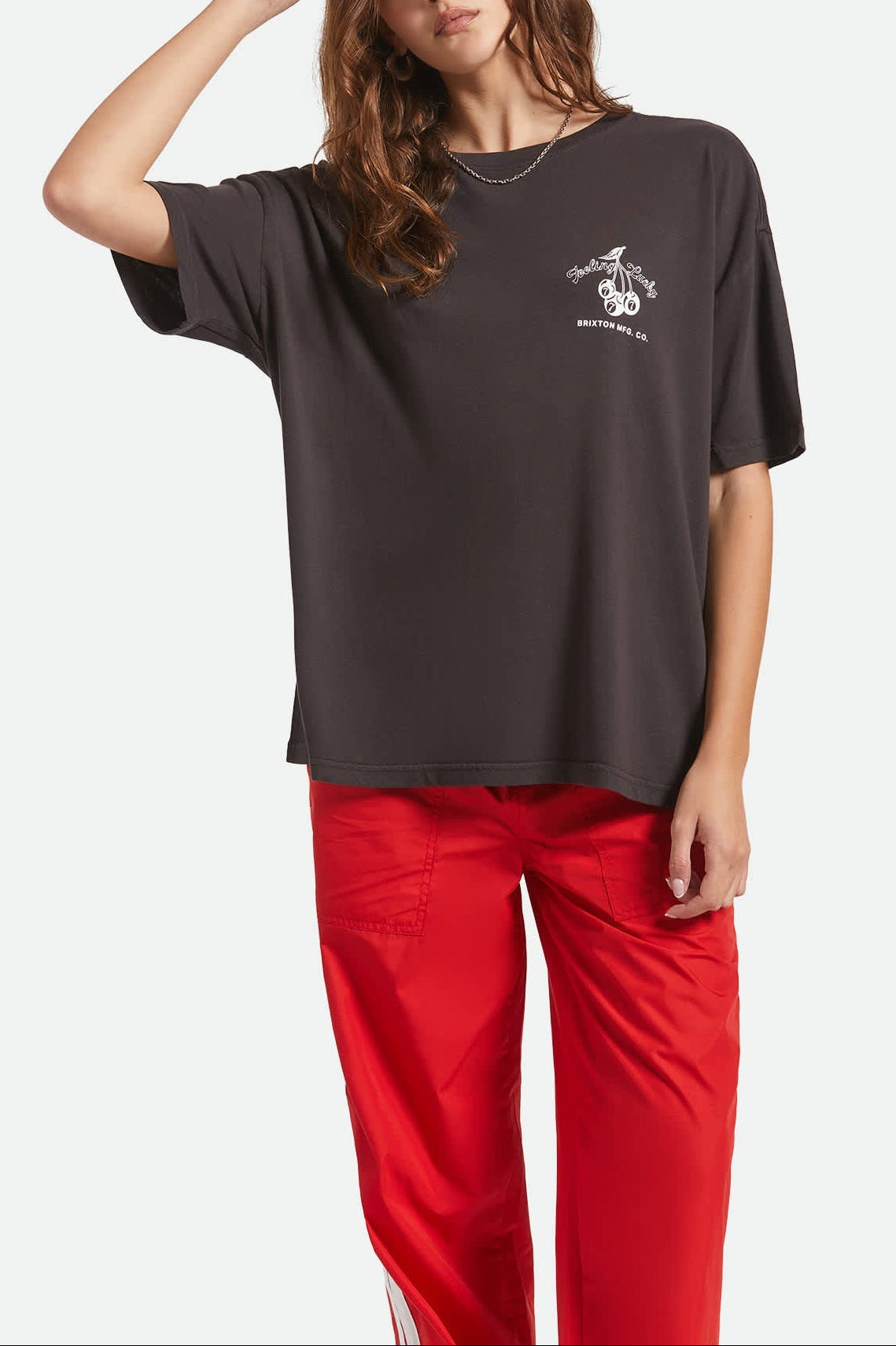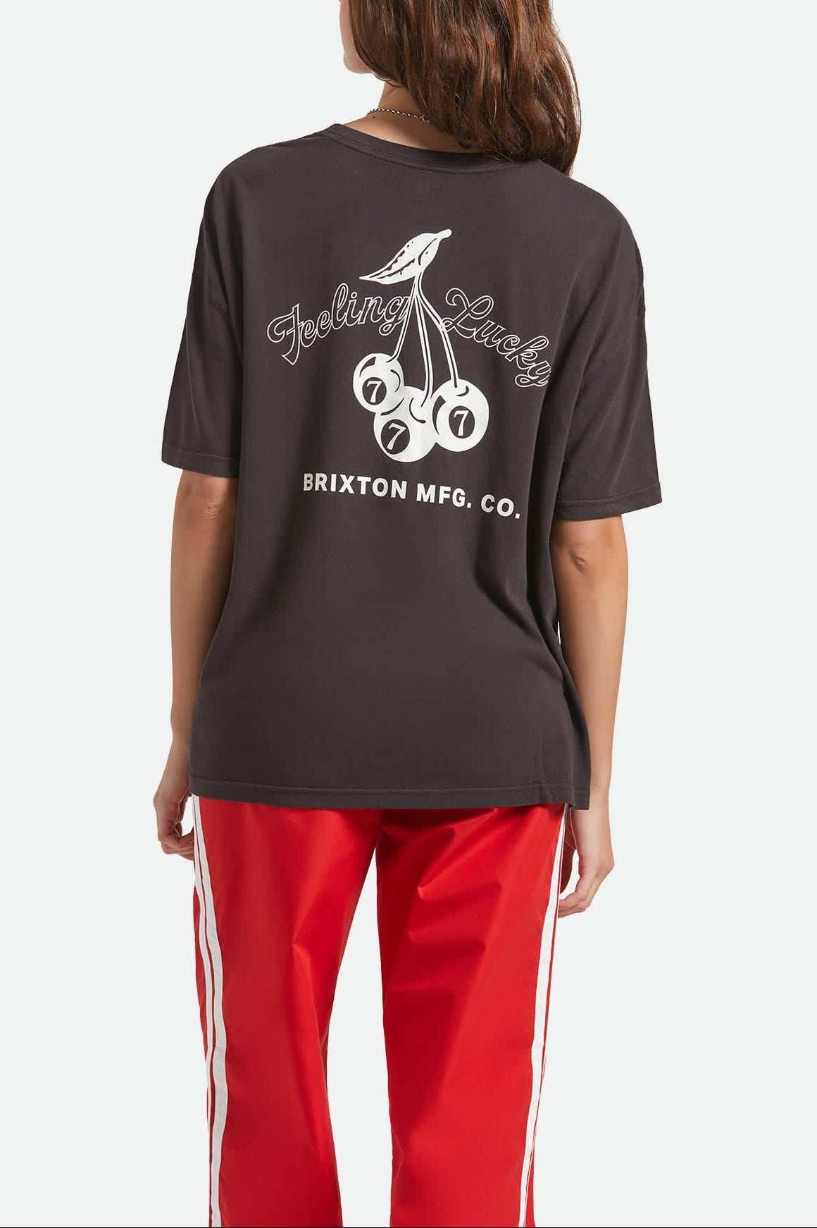 Looking for your new favorite t-shirt? Lady Luck is on your side. This oversized boyfriend tee brings together classic comfort and playful style with its vintage-inspired cherry and lucky number 7 screenprints on both sides. Made from 100% sustainable BCI cotton, it's as kind to the planet as it is to your wardrobe. The black garment-dyed fabric and worn wash finish give it that perfectly broken-in feel, like you've been winning at life in it for years. Throw it on with your favorite jeans for an effortlessly cool weekend look, or dress it up with a leather skirt for a night out at the casino.