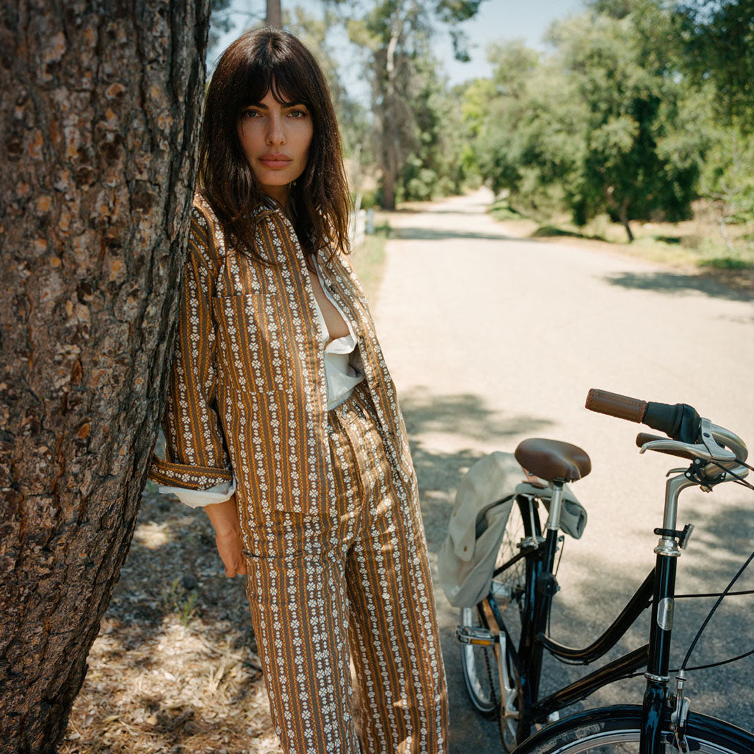 Meet Alyssa Miller – A multi-talented musician, muse, and creative force from Los Angeles, California. She joined forces with photographer and friend Cameron McCool to collaborate on our Brixton Fall campaign, set against the picturesque backdrop of Ojai, California. Using her innate eye for style, Alyssa artfully curated looks with our New West collection that complemented the beauty of the serene setting.