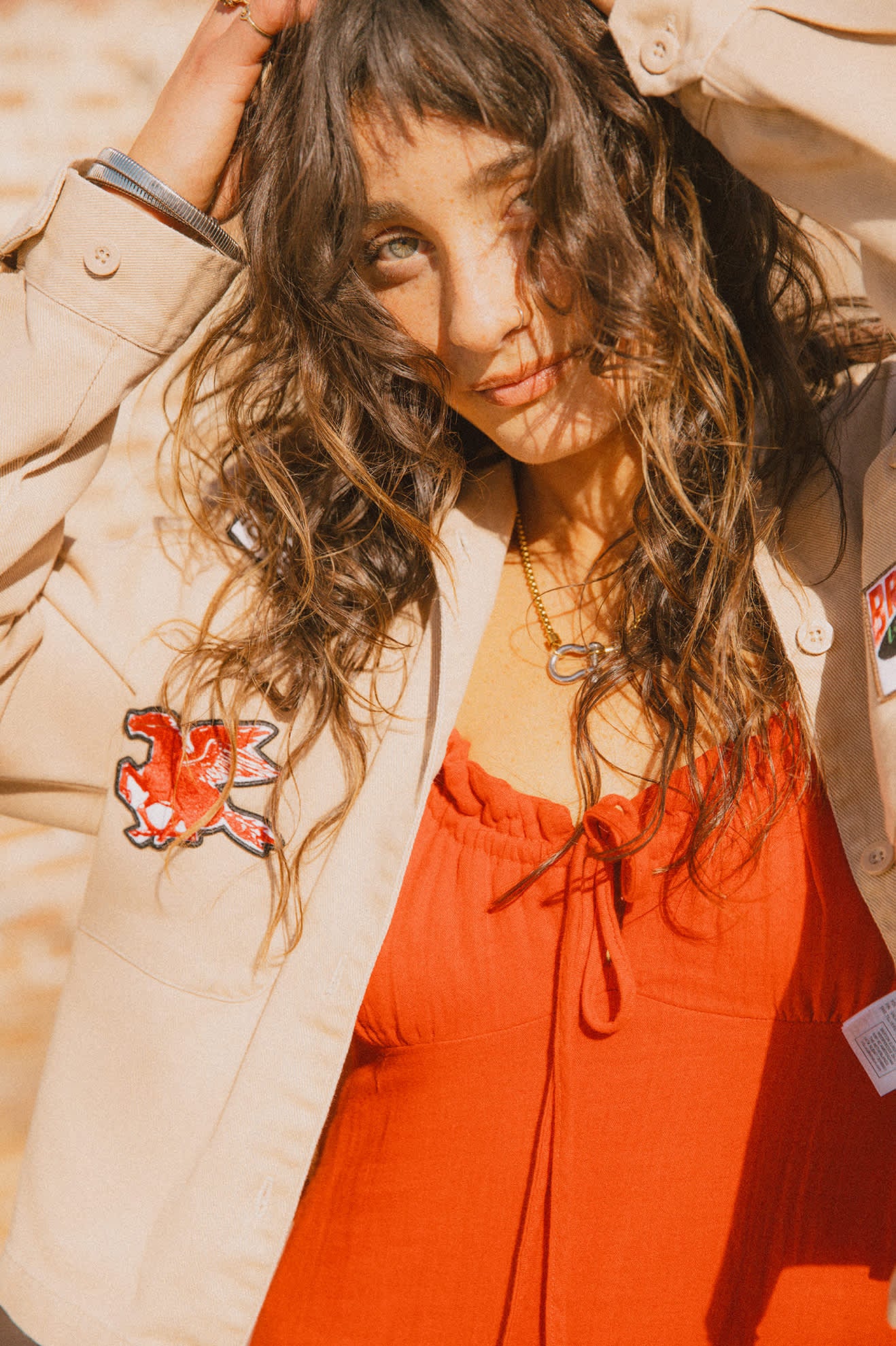 Workwear gets a modern upgrade. The Utopia Overshirt is made with 100% cotton in versatile taupe that pairs with everything in your closet. Contrast brown corduroy collar and seasonal patches add authentic details, while patch pockets and adjustable sleeve cuffs bring functional style. The relaxed silhouette works perfectly for layering your favorite tanks and tops.