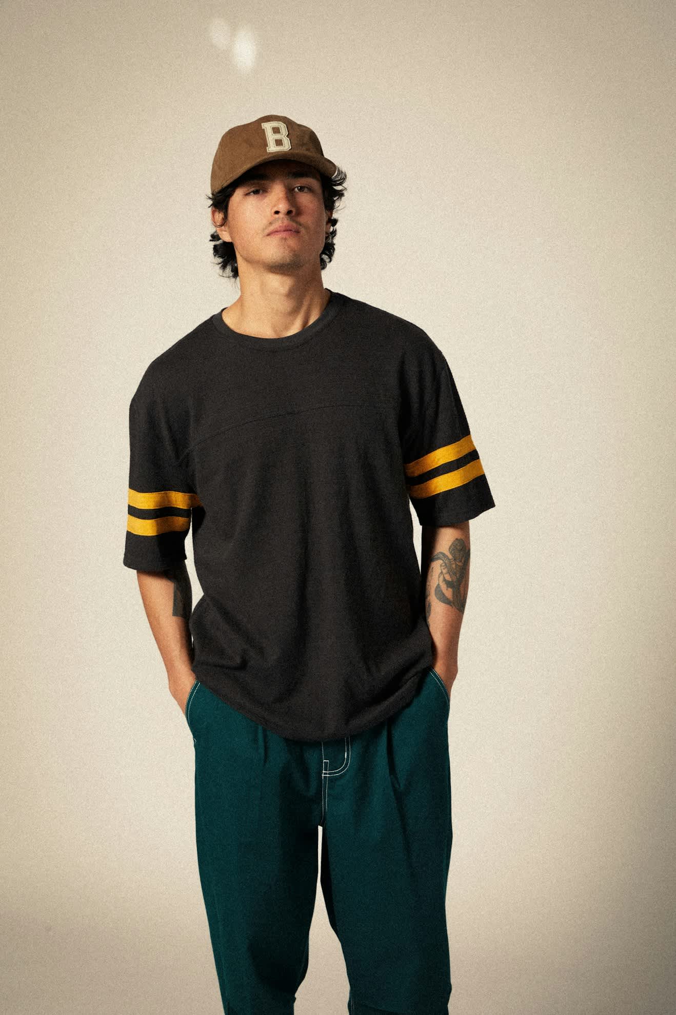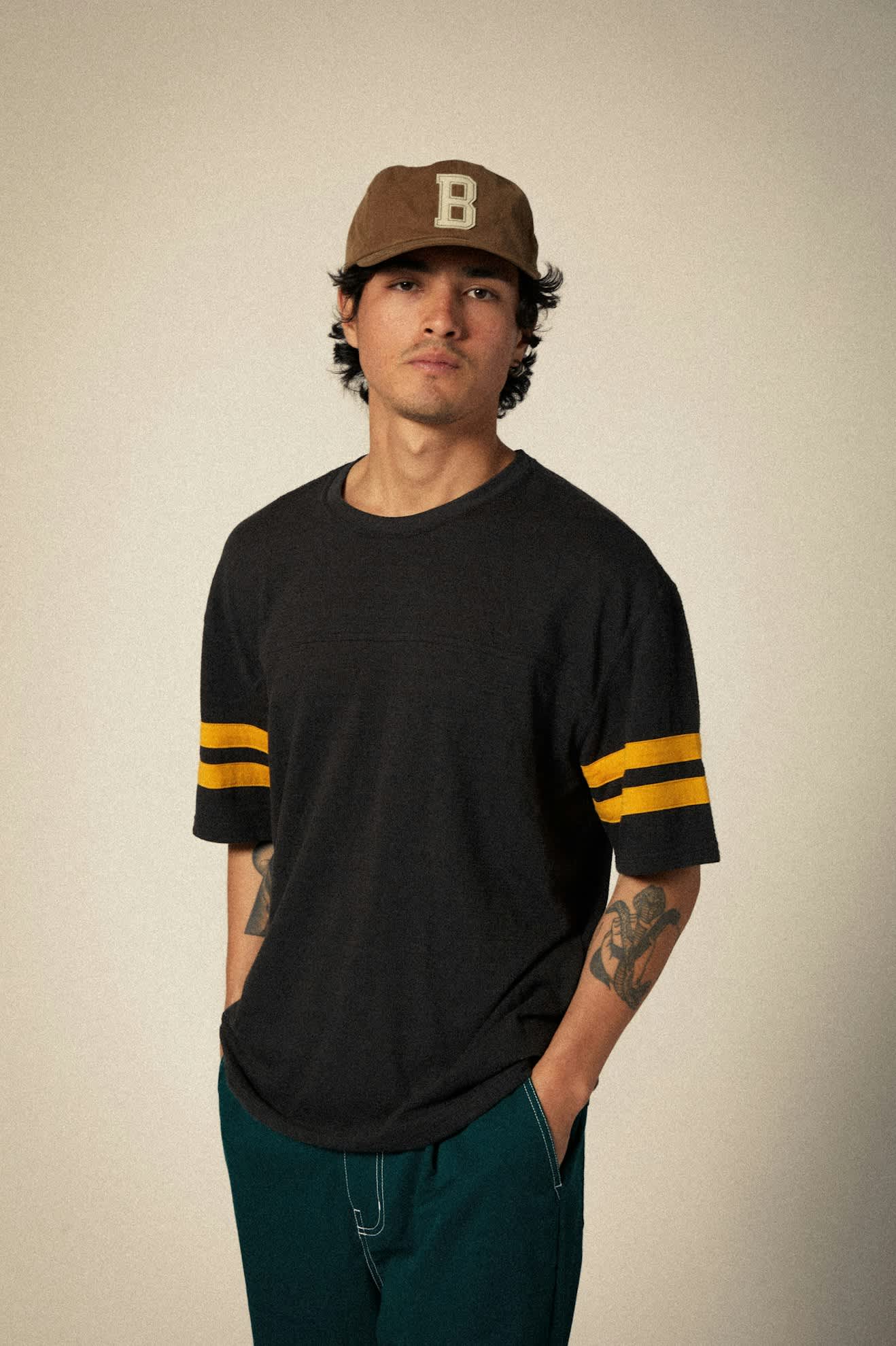 The Big B is a staple unstructured Brixton baseball cap. Made from a soft cotton cord, it's designed with a curved brim and a bold, felt patch front and center. Beaches, burgers, babes, bourbon, burritos, Big B.