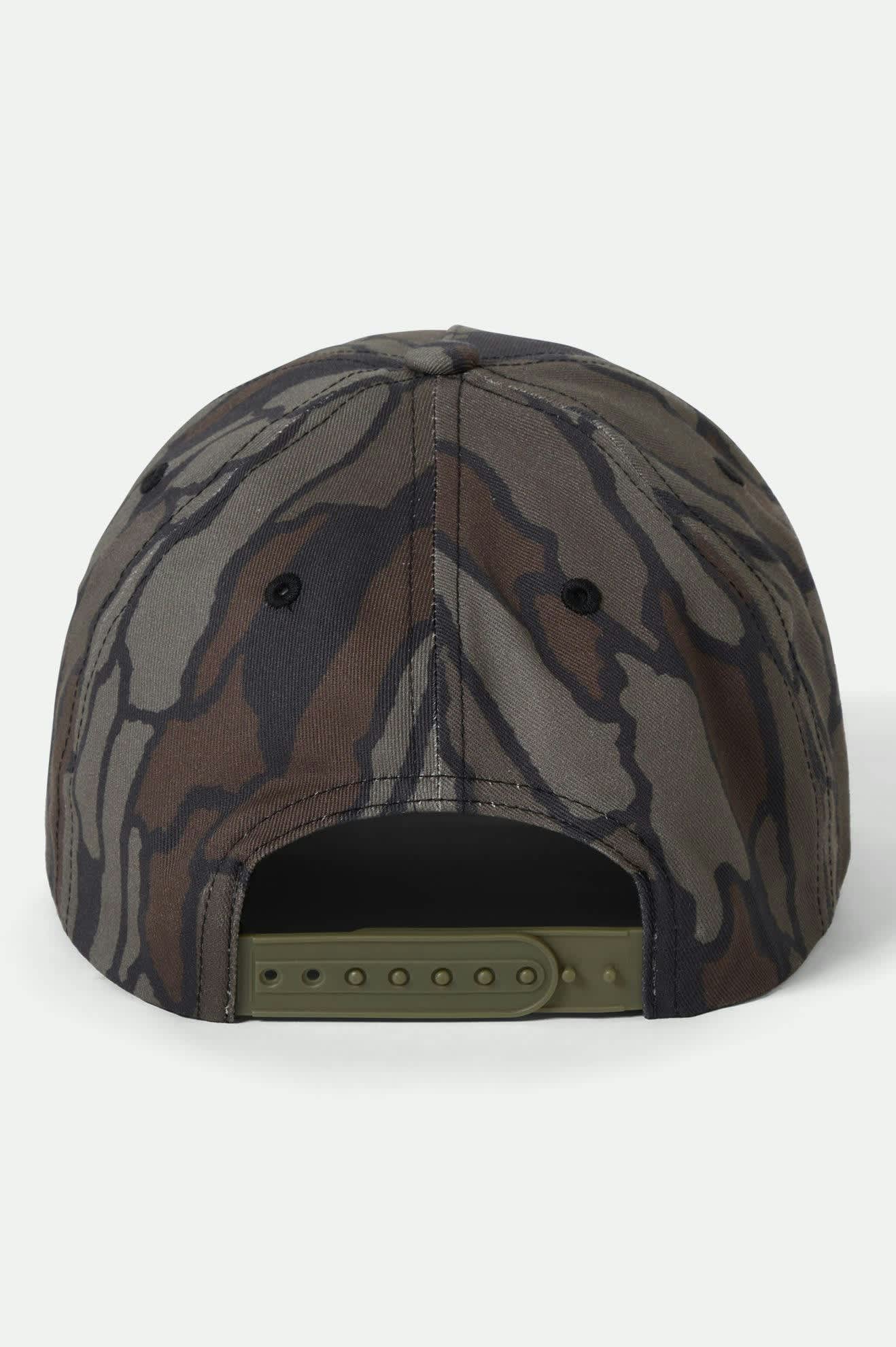The Crest Snapback is a structured 5-panel snapback with a lightly curved brim. It features a Bureo Netplus® visor made from recycled fishing nets and a merrowed-edge embroidered Brixton patch.