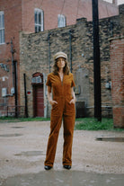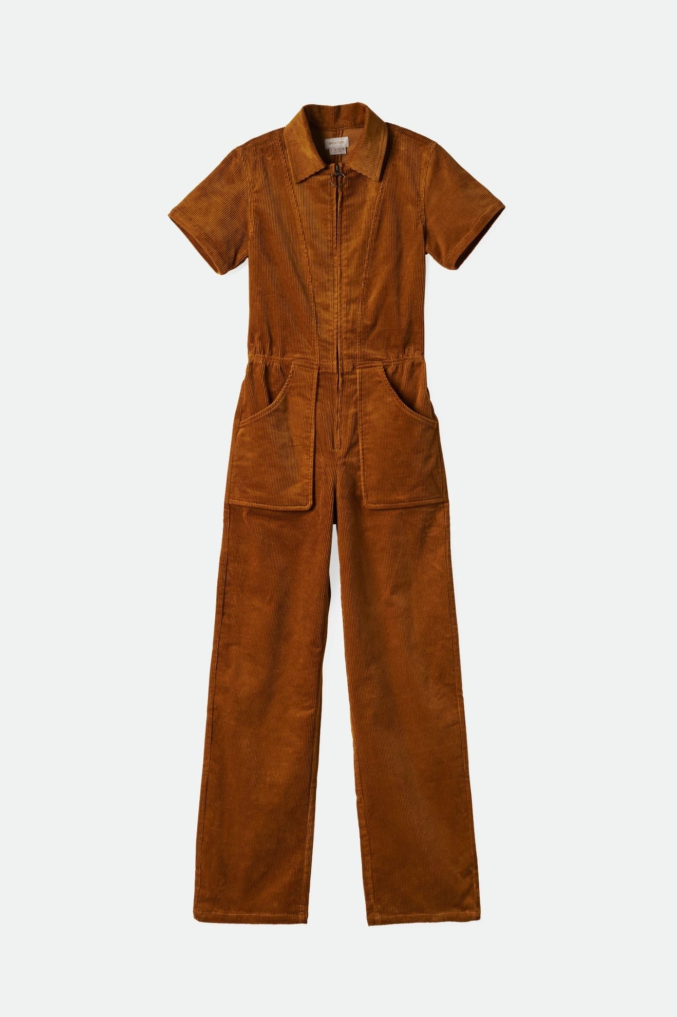 Your search for the ultimate grab-and-go women's jumpsuit ends here. This soft yet sturdy cotton corduroy one-piece is built for life's adventures. Multiple surplus pockets let you stash all your must-haves close by. And the vintage-inspired style adds an effortless edge to any look, seamlessly transitioning you from morning coffee runs to evening hangouts. Comfort, versatility, and utility—all in one easy jumpsuit.